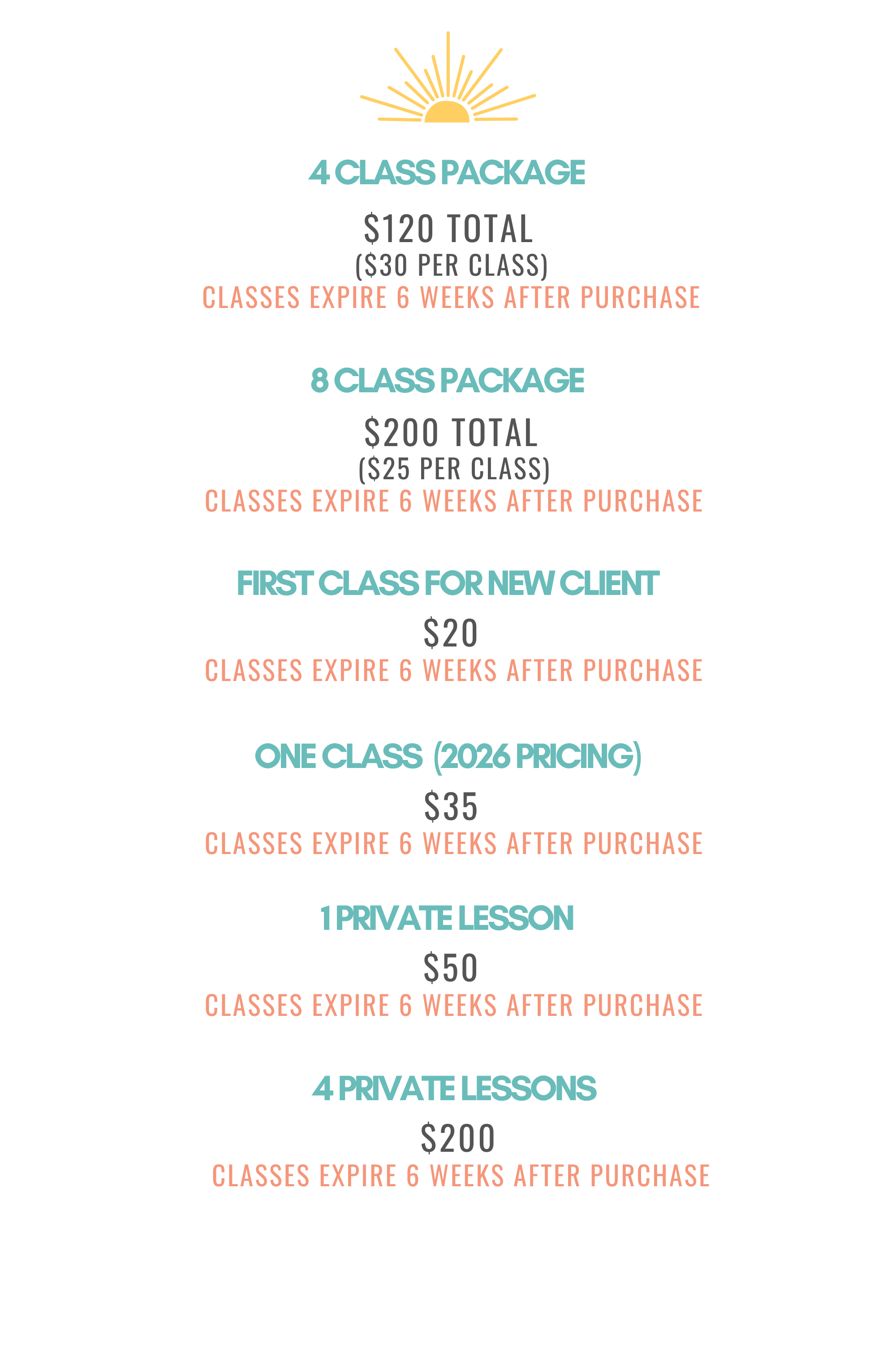 PLEASE ALWAYS NOTE EXPIRATION DATES FOR CLASSES AND PACKAGES WHEN PURCHASING!